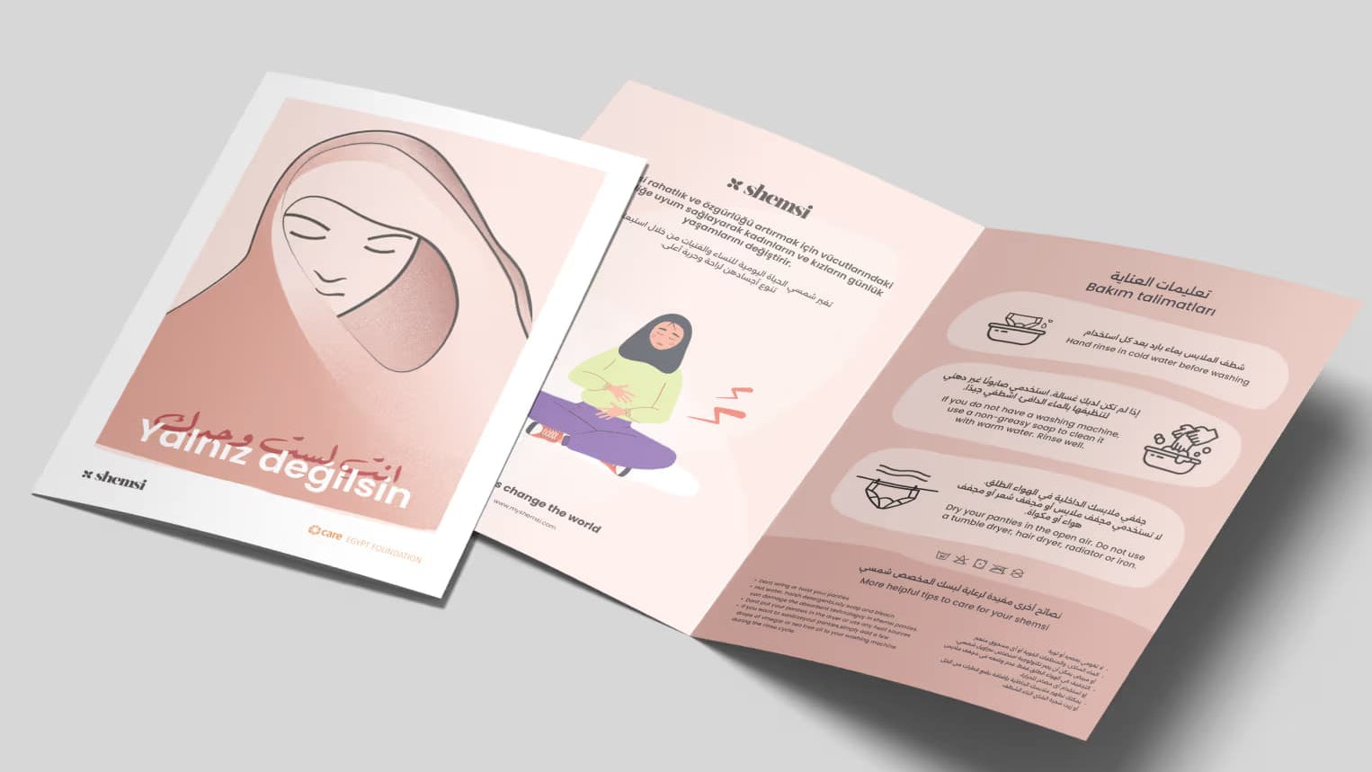 Shemsi's Period Kits include an educational leaflet designed for teenagers who discover their period for their first time, in a bid to remove misleading information often present in areas impacted by period poverty. The Shemsi comic strips have been designed with leading adolescent psychologists. It is localized (both the text and images) for Egypt, Morocco, Saudi Arabia, Jordan, Syria, Turkey, DR Congo, Ethiopia, Nigeria, Uganda, Kenya. We can localize it for any other countries where you may have operations.